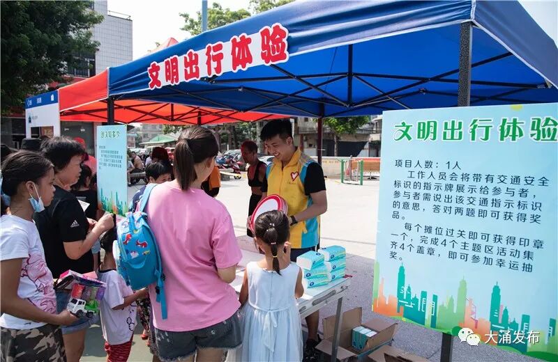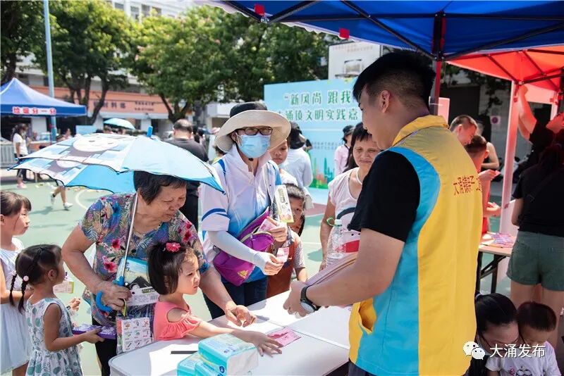 8月29日,由大涌镇精神文明建设委员会办公室主办的“新风尚 跟我学”大涌镇文明实践嘉年华活动在南文社区健身广场举办。活动现场设“文明餐桌”、“文明交通”、“垃圾分类”、“创文宣传”四大互动体验主题区,通过体验式学习,引领市民群众自觉践行文明健康、绿色环保的生活理念。