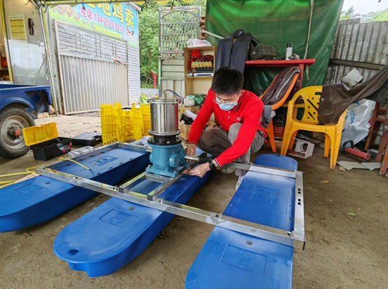 4月23日,三角供销社工作人员把“三船四叶增氧机”配送到位于三角村的社员养殖基地,并完成安装服务。