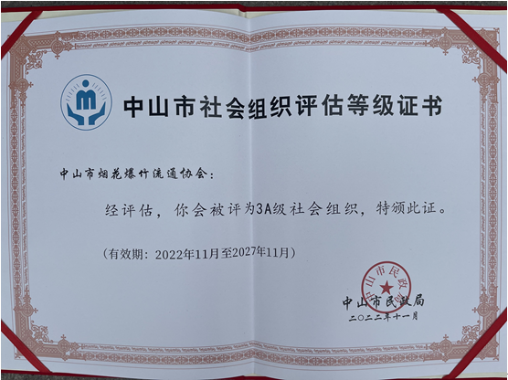 日前,市民政局向市烟花爆竹流通协会颁发了3A等级协会牌匾和证书。