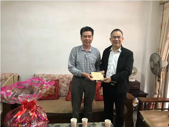 4月26日下午,市供销社党组书记、理事会主任黄声群带领人教科有关负责同志,来到市供销社系统全国劳模陈伯森同志家中进行慰问。
