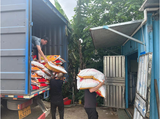 4月28日,市供销新渔公司为阜沙镇的水产养殖客户配送饲料8吨。