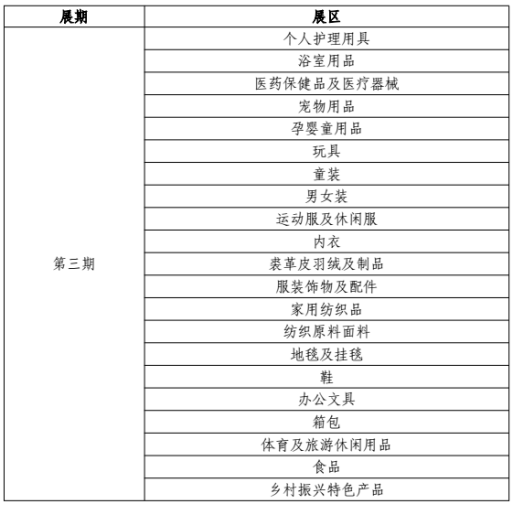 共设置55个展区,各展期对应展区设置详见附件1,各展区参展展品范围详见附件2。
