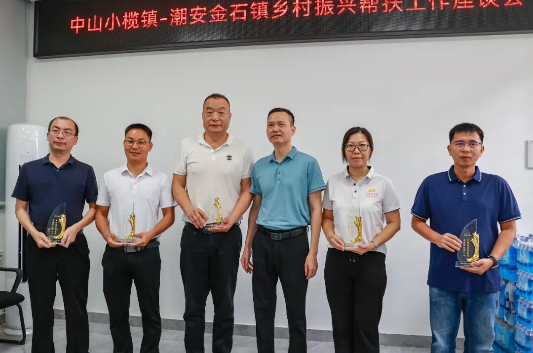 金石镇向小榄镇、小榄镇组团驻金石镇帮扶工作队送上感谢信和赠送纪念品。