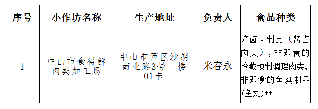 根据《广东省食品生产加工小作坊和食品摊贩管理条例》和《广东省食品药品监督管理局食品生产加工小作坊登记管理办法》,经审查,以下食品生产加工小作坊符合相关要求,拟发放《广东省食品生产加工小作坊登记证》,现依法予以公示,公示期为5个工作日。