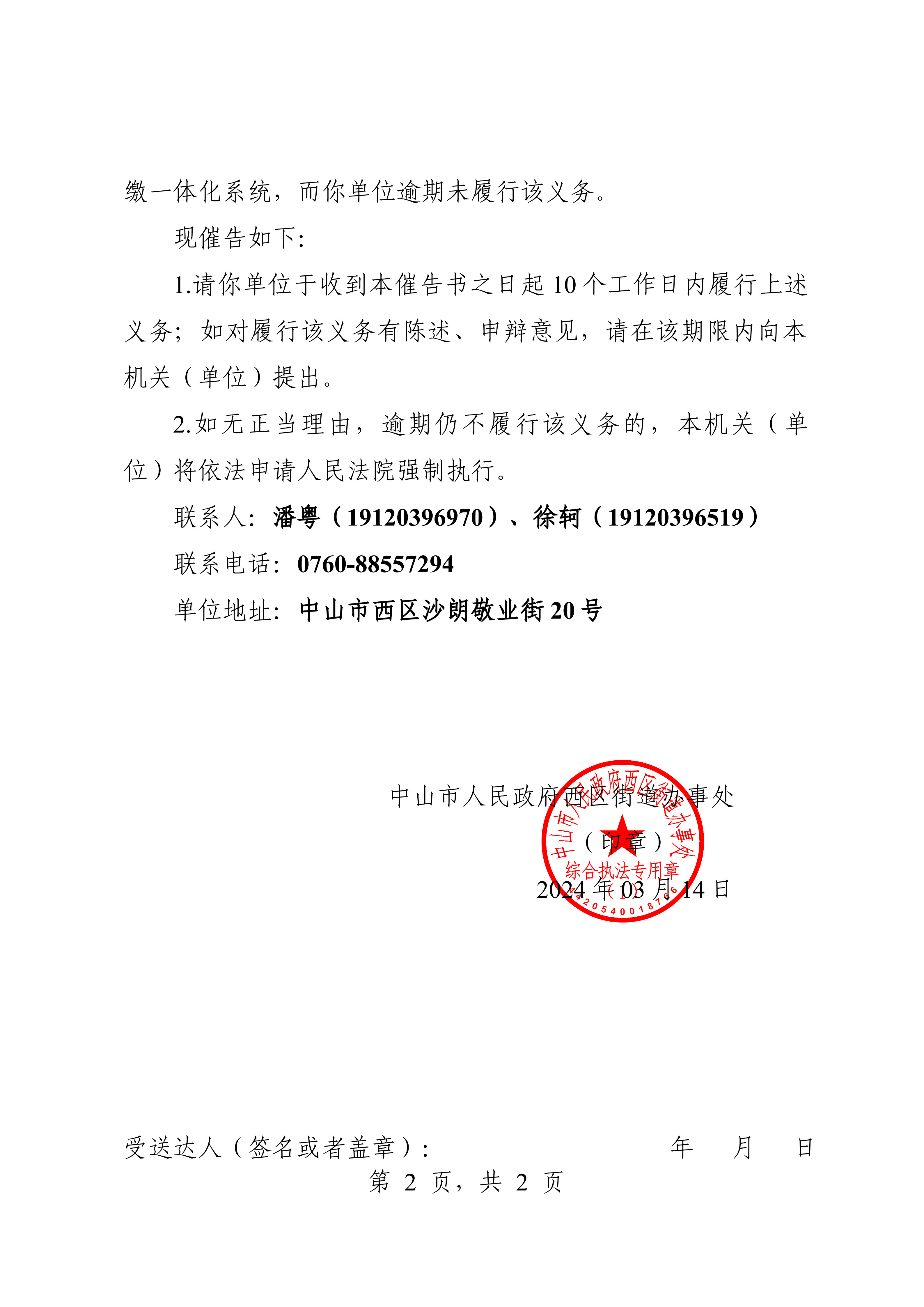 附件:《行政强制执行催告书》{粤中西区(执)催告字[2023]0352 号}