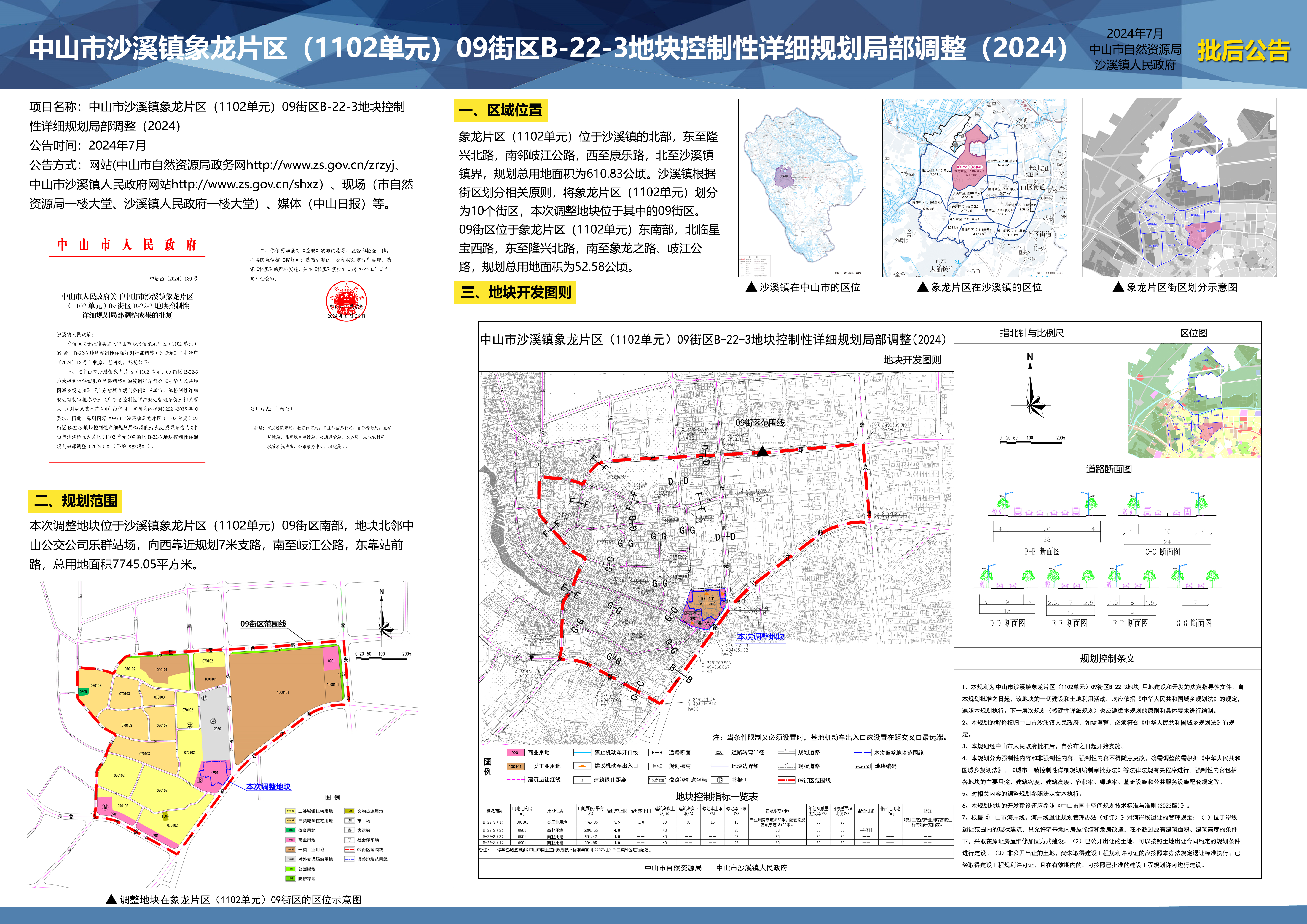 附件:《幸运时时彩(中国)开奖记录查询站 沙溪镇象龙片区(1102单元)09街区B-22-3地块控制性详细规划局部调整(2024)》(批后公告板)
