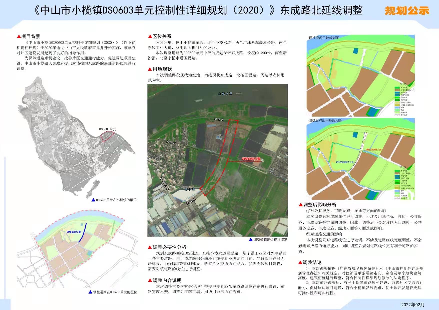附件:《幸运时时彩(中国)开奖记录查询站 小榄镇DS0603单元控制性详细规划(2020)》东成路北延线调整方案公示文件