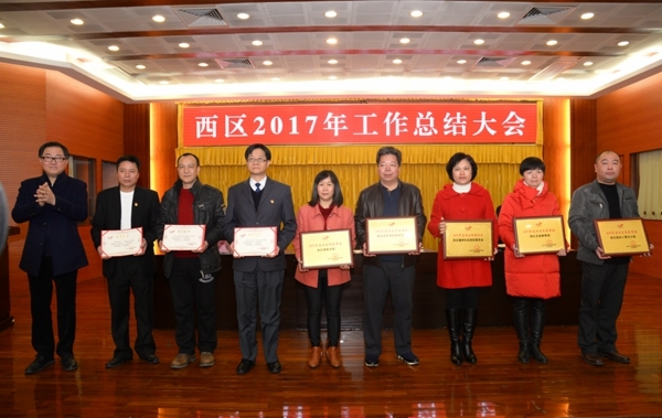 2月2日,西区召开2017年工作总结大会。会议总结了过去一年的工作,谋划新一年的发展。区党政班子成员及助理,党代表、人大代表,机关干部职工,双管单位负责人,社区“两委”干部,中小学校长、幼儿园园长,离退休支部支委,西区商会会长及市杂货业商会会长,西区科协、知联会代表等参加会议。