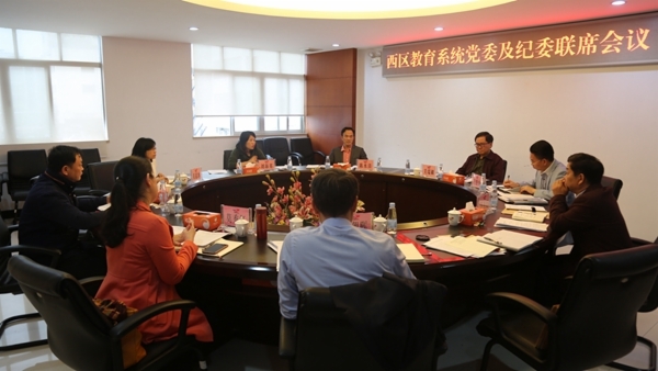 3月14日下午,西区教育党委及纪委召开第一次联席会议,区党工委书记关瑞麟、区党工委委员冯能兴、区教育党委及纪委全体成员参加会议。