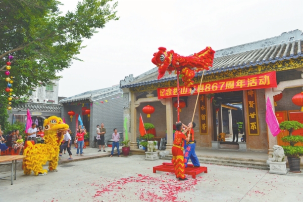 Kuchong Village in East District on October 14 organized activities to celebrate the 867th anniversary of the establishment of Xiangshan County at the Chen Tianjue Ancestral Hall. [Photo by Xia Shengquan]