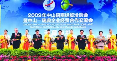 Zhongshan Trade and Investment Fair 2009 and Sweden-Zhongshan Business Seminar grandly opened on March 28. Under the circumstance of global economic crisis, Zhongshan receives more domestic and foreign investment this year, totaling 231 projects of 2.67 billion US dollars. Of this total, 17 foreign-invested projects are of 20 million US dollars each and 34 domestic ones are of 100 million yuan each.