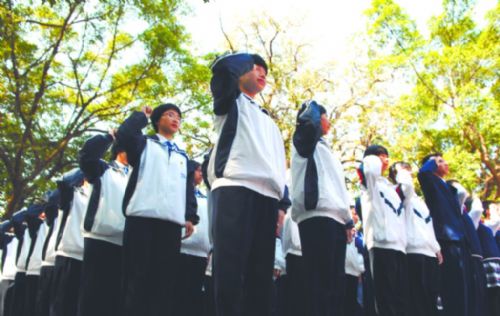 About 300 18-year-old students swore a solemn oath under the five-star red flag at the square of Sun Yet-sen's former residence.