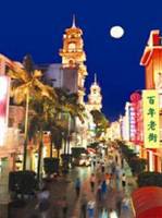 Sunwen Xi Pedestrian Street, once called Ying’en Street, connects Zhongshan Department Store in the east to Fengming Road in the west. The low buildings along both sides of the street present a typical Nanyang architecture style, a combination of the European colonial style in the late 1890s and the early 1900s with the traditional Cantonese sotto portico style. The storied buildings adjoin together to form a magnificent arcade for pedestrians against rain, wind or the strong southern sunshine.