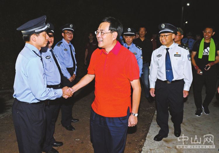 10月16日晚,陈旭东到大尖山慰问保障市民登山安全的工作人员。